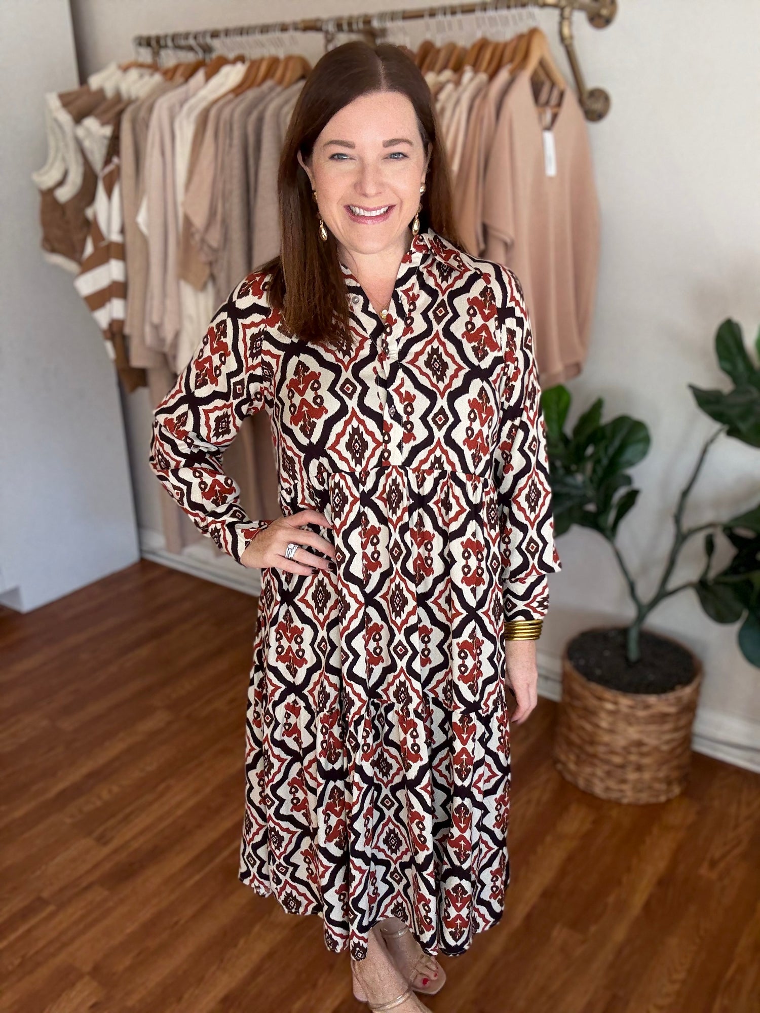 Indulge in the fun and unique style of our Something to You Midi Dress! This trendy piece features a playful print that is sure to turn heads. The midi length and half button design add a touch of sophistication, making it perfect for any occasion. Elevate your wardrobe with this must-have dress! These have no stretch and run true to size. Candace is 5’4”, size 6/8, bra 38c, and wearing a small.