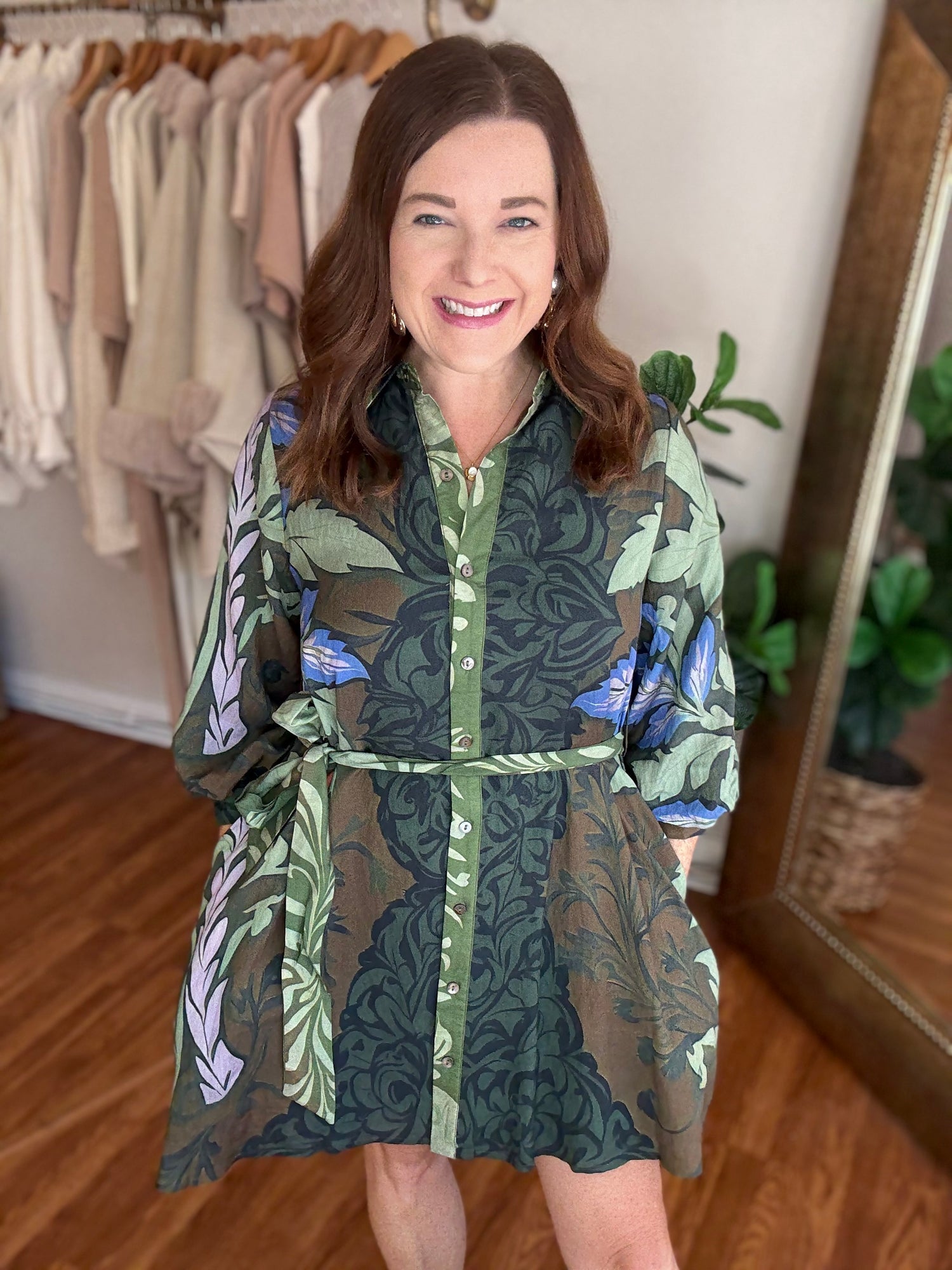 This gorgeous botanical print dress is bursting with pretty colors, making it the perfect addition to your wardrobe. Its button up design adds a touch of elegance, while the lining and pockets make it both fashionable and functional. Add a little love to your style with this dress! These have no stretch and run true to size. Candace is 5’4”, size 6/8, bra 38c, and wearing a small.