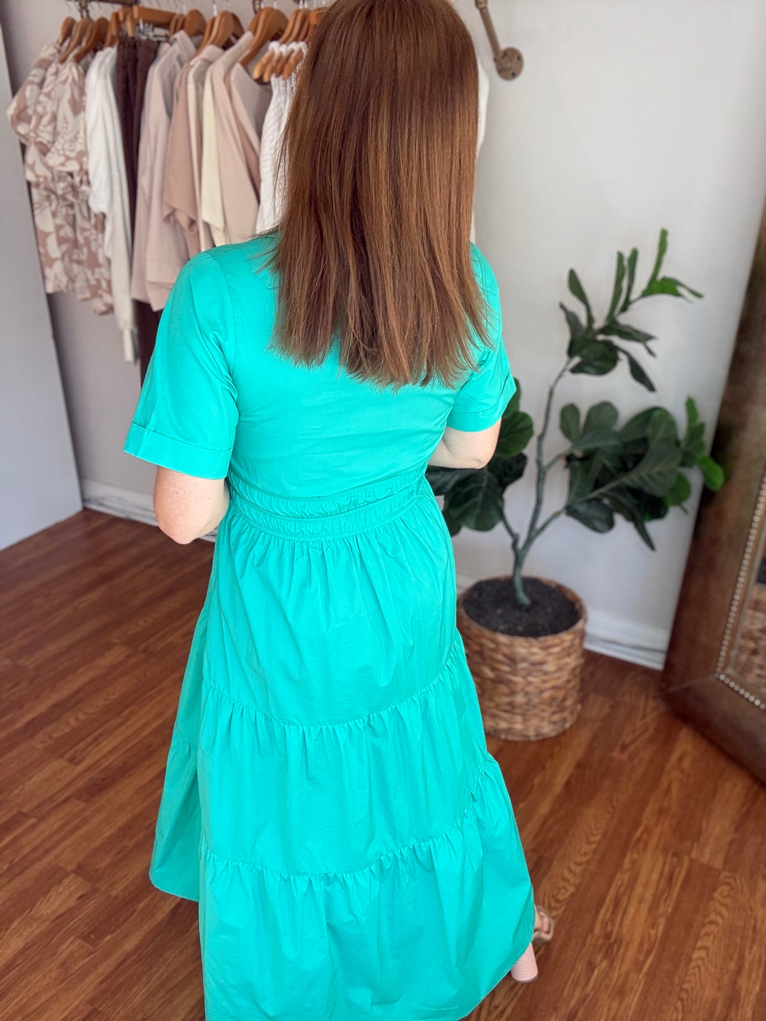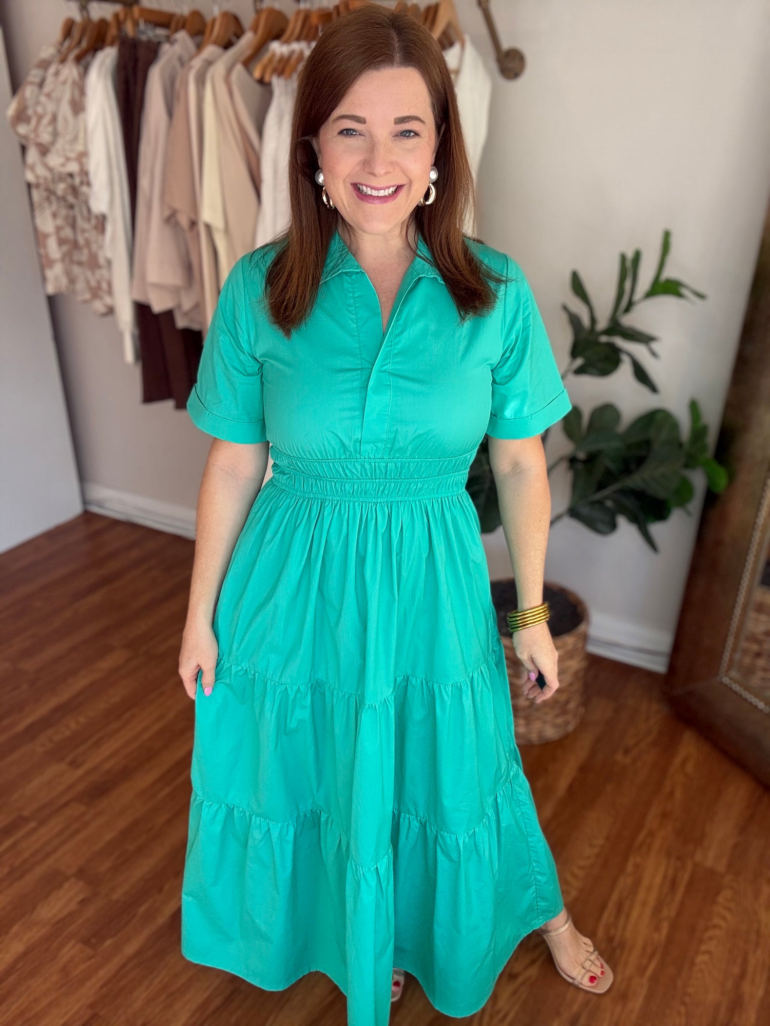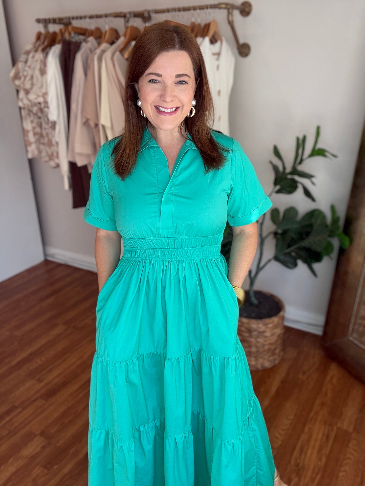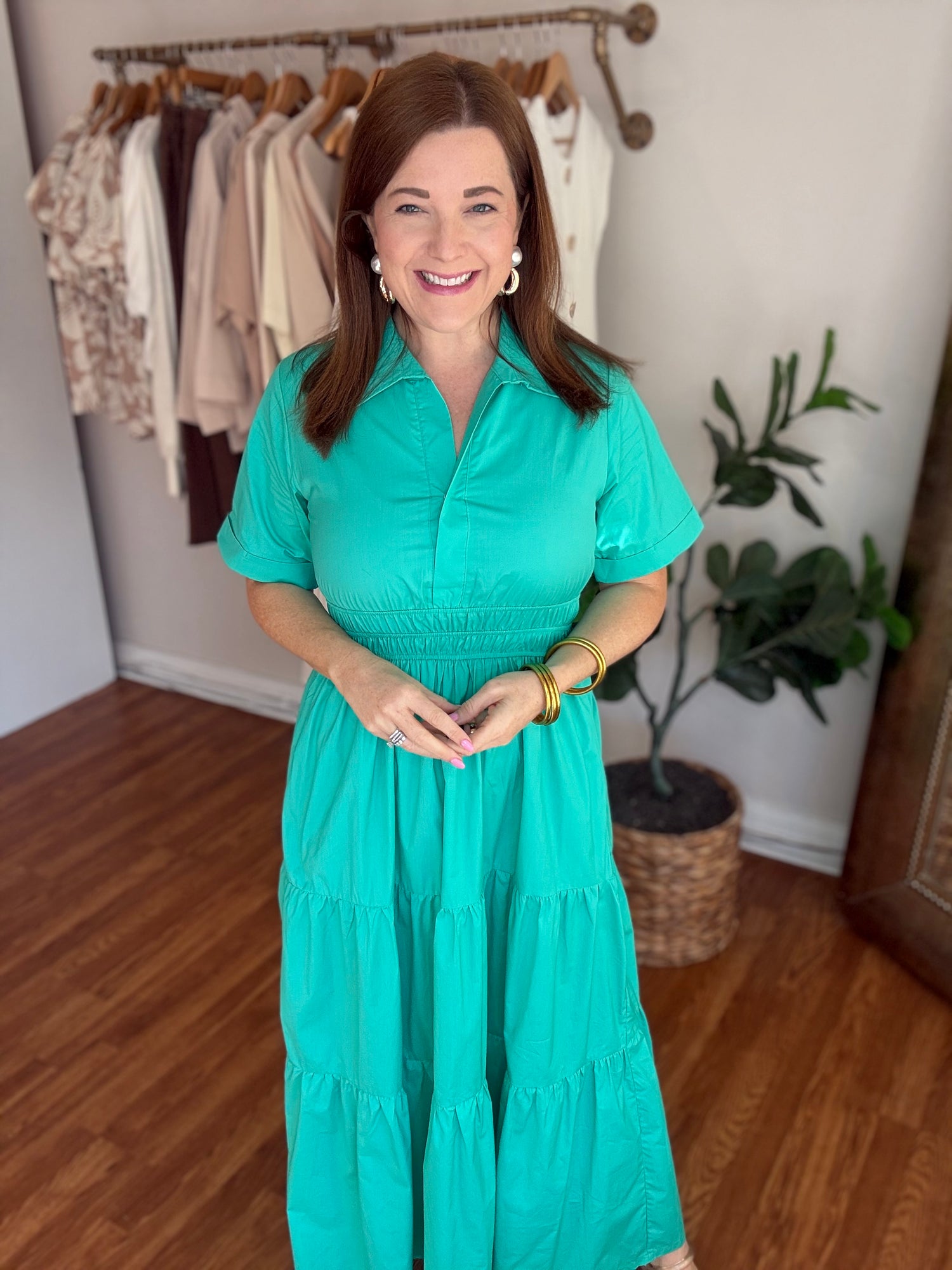 Effortless elegance meets everyday comfort in this forever-favorite maxi dress. Featuring short sleeves, a flattering tiered silhouette, and a convenient front snap closure for easy dressing. Practical hidden pockets keep your essentials close. Perfect for casual outings, weekend adventures, or relaxed gatherings—a versatile staple that works season after season. These have no stretch and run true to size to slightly small through the bust. We recommend sizing up if you are busty. Candace is 5'4", size 6/8, bra 38c, and wearing a small.