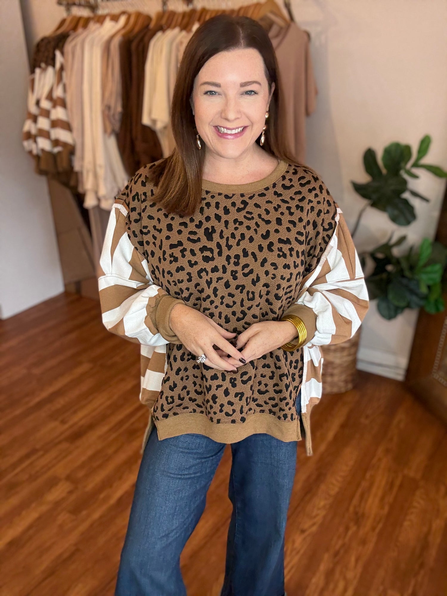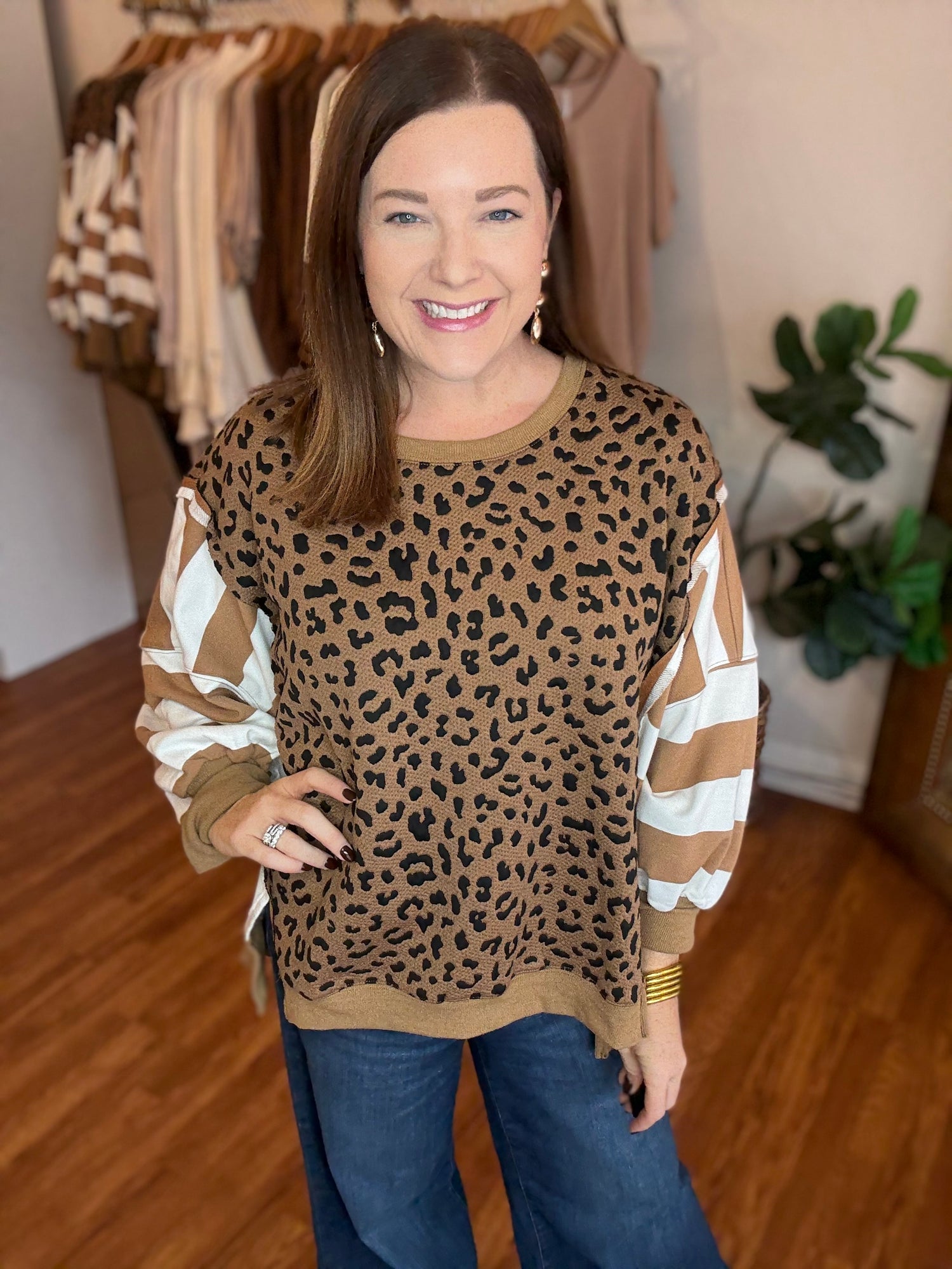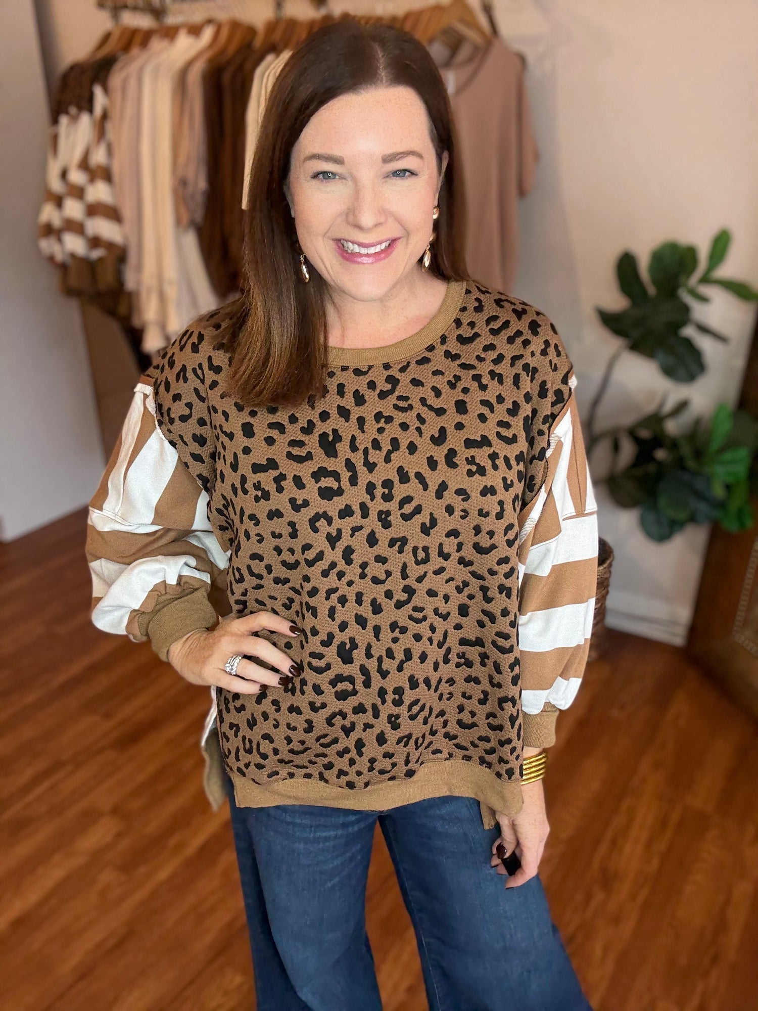 Experience the perfect blend of style and comfort with our That's So true Top. This trendy mixed media top features a soft knit material and a loose, oversized fit for a chic and comfortable look. Elevate your wardrobe and make a statement with this must-have piece. These run very generous in size. Candace is is 5’4”, size 6/8, bra 38c, and wearing a small.