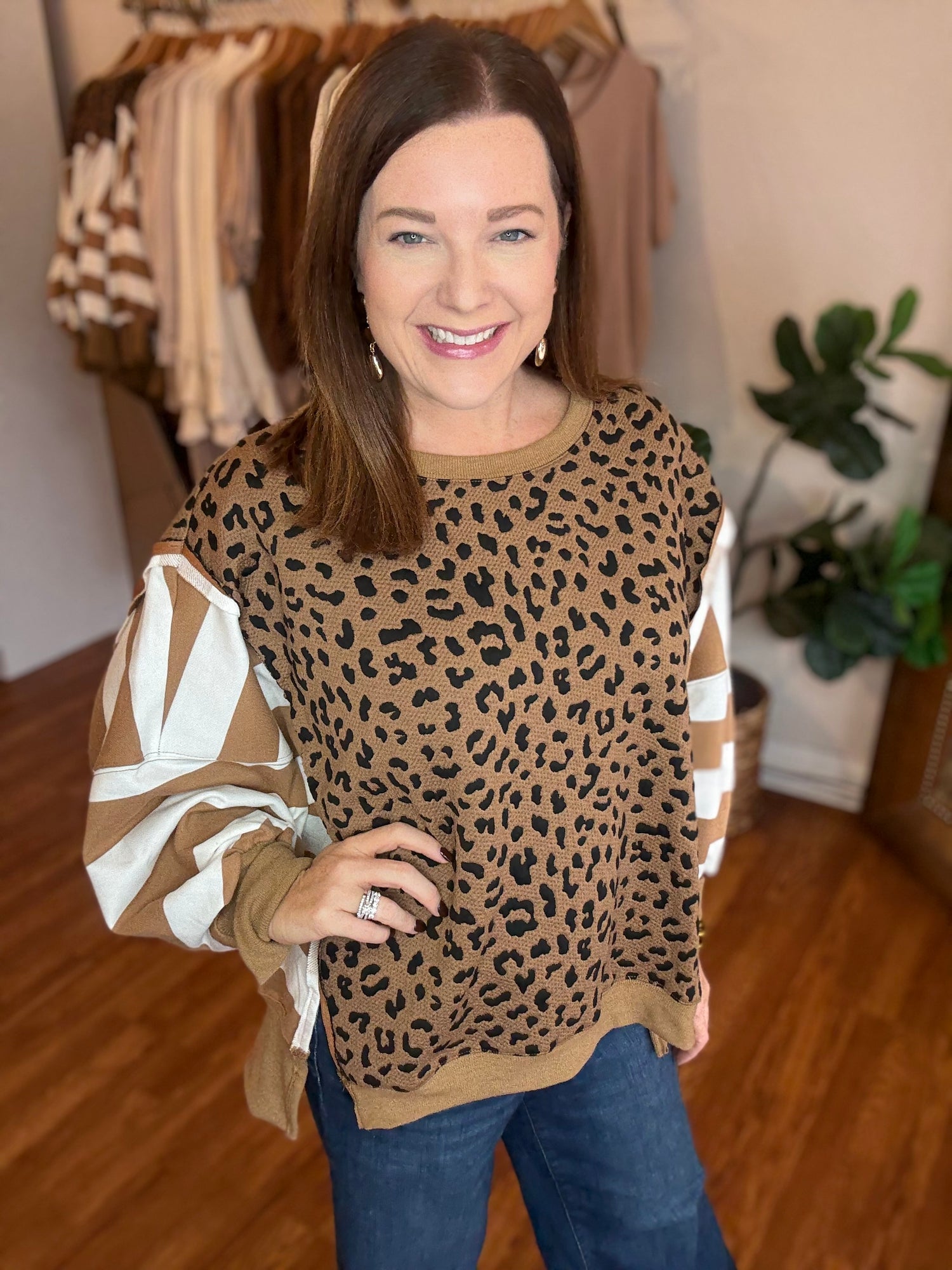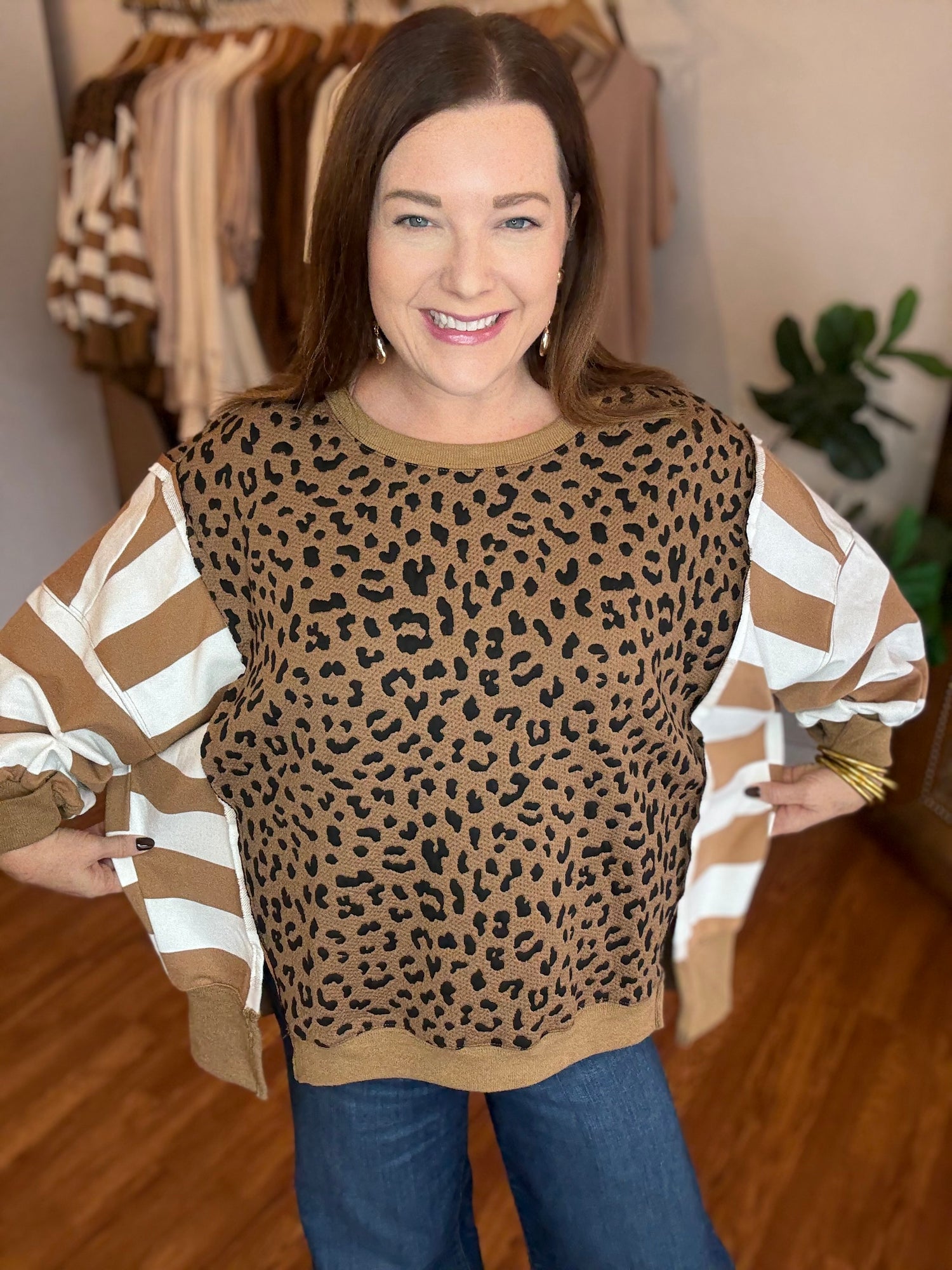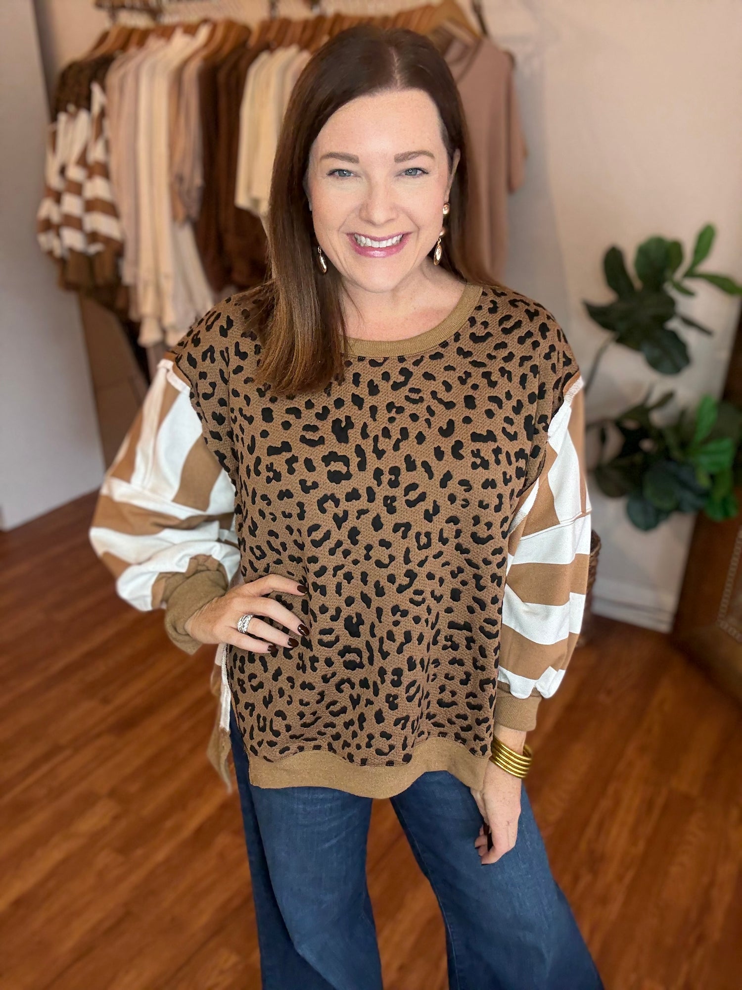 Experience the perfect blend of style and comfort with our That's So true Top. This trendy mixed media top features a soft knit material and a loose, oversized fit for a chic and comfortable look. Elevate your wardrobe and make a statement with this must-have piece. These run very generous in size. Candace is is 5’4”, size 6/8, bra 38c, and wearing a small.