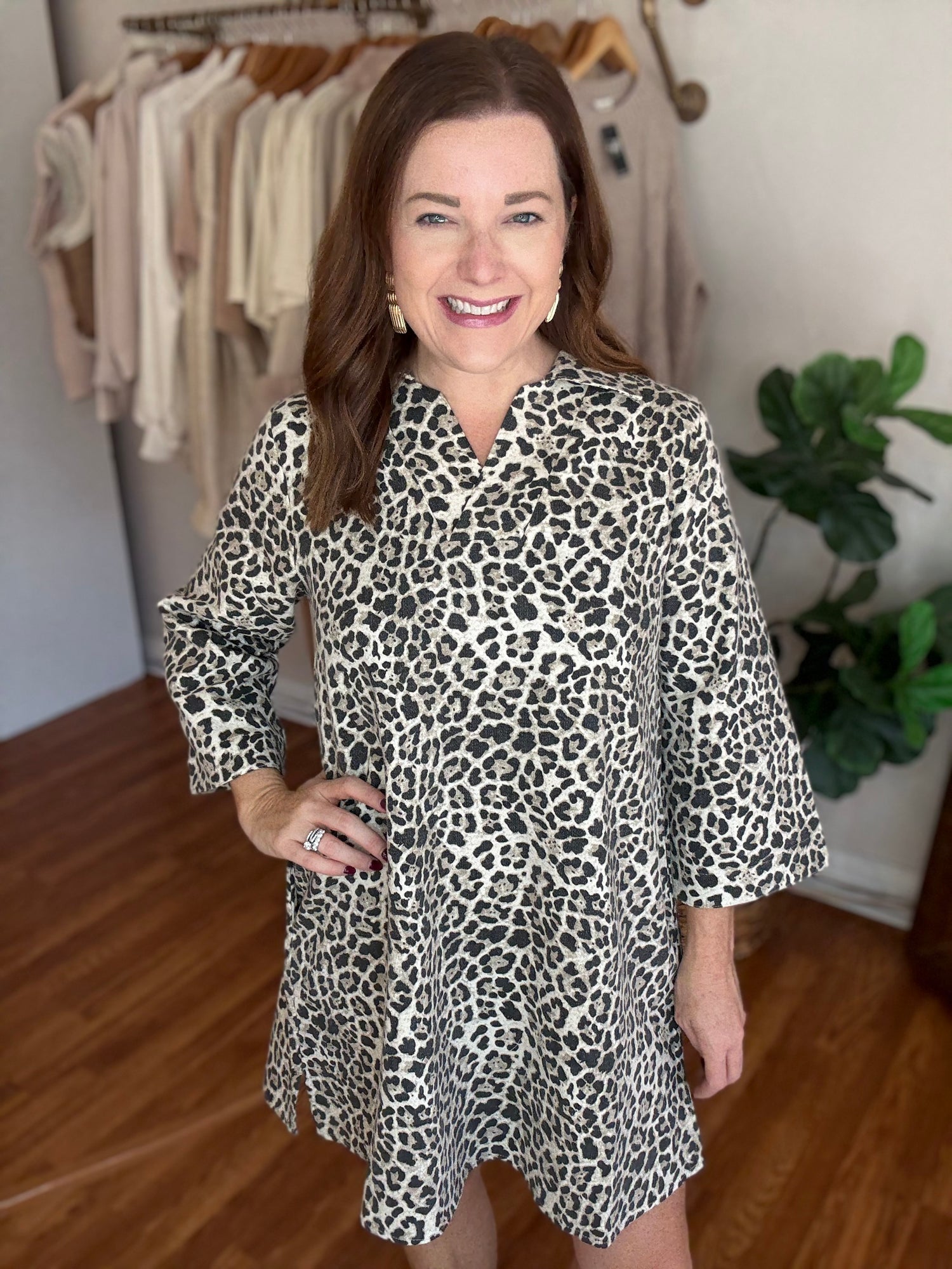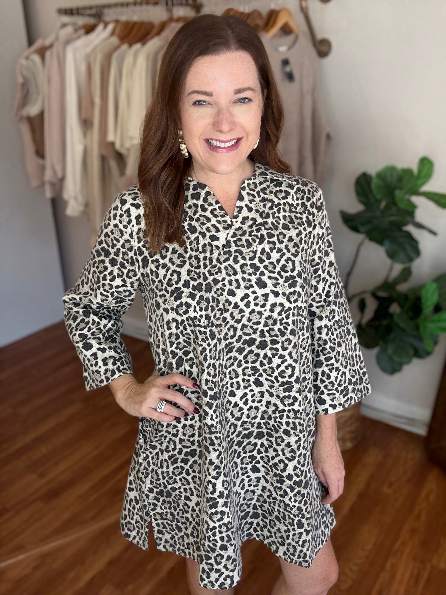 Get wild with our spectacular Wild About It Dress! Show off your fashion-forward side with the trendy animal print design. Not only does it make a statement, but it also features a classic shift style and convenient pockets. Look and feel effortlessly stylish in this must-have dress! These have a slight amount of stretch and run true to size. Candace is 5’4”, size 6/8, bra 38c, and wearing a small.